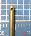 直径1mmちょっとの真鍮パイプを組み合わせて作った物です。ある箇所のギミックとして製作した物です。伸縮します、回ります。でもあまり無理に動かすと壊れます(苦笑)。L字に接着する際にピンバイスで穴を開け、そこに真鍮線を通して接着する事で強度を確保しています。穴を開ける時にやはりと言いますか手元が狂って手にドリル刃が刺さりました。回転力がかかっていますので、かなり痛いです。ドリル刃の径が1mmだったのが不幸中の幸いでしたが(苦笑)。
