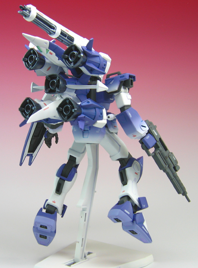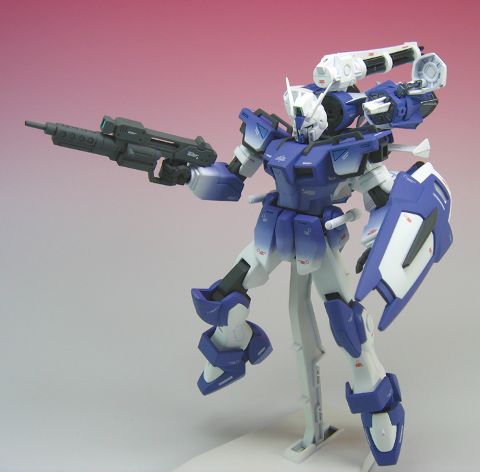 | 改修箇所 頭部・・・ ブレードアンテナを削り込んでシャープに、マスクはHGストライクのマスクを 改修し、複製した物を用意しました。通常のマスクと選択式にしています。 首は付け根下に前後スイング機構を組み込み、可動範囲を広げています。 この工作は可動範囲を広げると言うより、顎を引いたときのポーズがより自然になる事を目的としています。 腰部・・・ フロントアーマーは真鍮線を使って独立可動するよう 改修しました。バンダイエッジも処理して面を シャープにしています。 腕部・・・ 手首側に市販のパーツを加工して貼り付け、 手首の細い軸とポリキャップが隠れるようにしました。 肘関節前面にはモールドを彫りこんで ディテールアップしています。 手首はキットの物とは別ににハイディテールマニピュレーターの平手 (左右2種)を用意しました。 武器・・・ キットの物は銃口が開いていませんので 真鍮パイプに置き換えました。 シールド・・・ シールド上の肉抜き穴をプラ材とパテで埋めています。 下の肉抜き穴はエッチングパーツで塞ぎました。 改修画像のページ 塗装・・・ 塗装はGFFなどで行っている塗装法と一部グラデーション塗装を行いました。 通常はスミイレ後にオーバーコートを 行うのですがつや消しを先にコートして、スミイレし 微妙なスミイレの「にじみ」をだし、スミイレの線も変化をつけます。 スミイレ後にまたつや消しをオーバーコートしますので最もつや消しが 強くなります。塗装の明度、彩度を上げた見た目が 鮮やかな塗装でもあります。 ガンバレルのバーニア等には 調色したブラックグレーの上にパールホワイト(粒子の非常に細かいビスマスパール)を 吹き付けています。 スミイレの調色は色が沈まないように気をつけました。 |