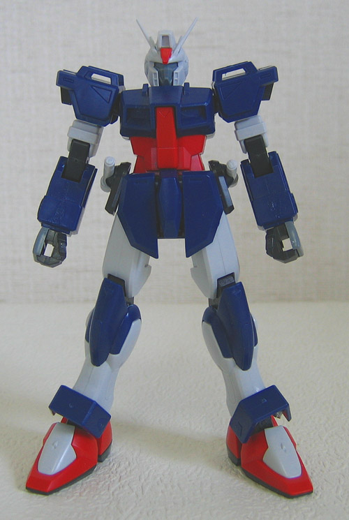 | 頭部・・・ ブレードアンテナを削り込んでシャープに、マスクはHGストライクのマスクを 改修し、複製した物を用意しました。通常のマスクと選択式にしています。 |