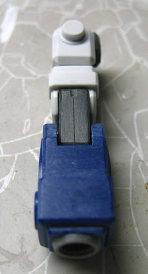| 腰部・・・ フロントアーマーは真鍮線を使って独立可動するよう 改修しました。バンダイエッジも処理して面を シャープにしています。 |