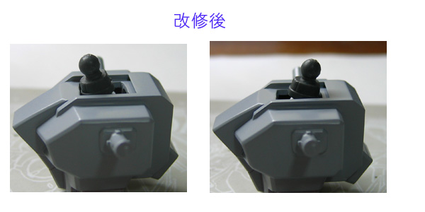 | 頭部・・・ 首は付け根下に前後スイング機構を組み込み、可動範囲を広げています。 この工作は可動範囲を広げると言うより、顎を引いたときのポーズがより 自然になる事を目的としています。 前回製作したストライクルージュと同じ考え方です。 |