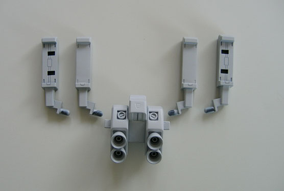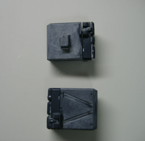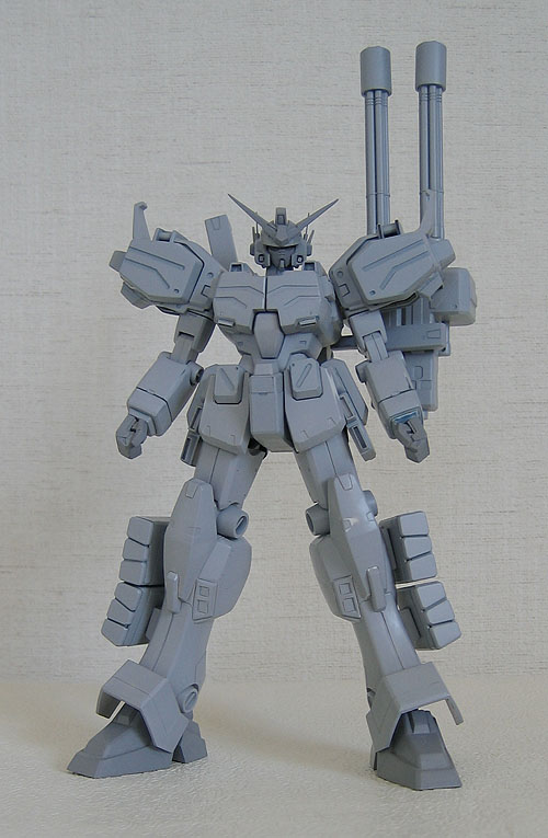 バックパック両サイドのアームにはガトリングを接続するための穴が開いているのですが接続していない時は目立ちます。最初は穴を塞ぐパーツを自作しようかと思ったのですが見た目も良くありませんし取り外しなどが面倒になりますので、ここは思い切って、もう一セット用意し穴を塞いだ物を作りました。穴を塞ぐと同時に少しモールドがうるさいと思いましたのでスッキリさせました。 |
