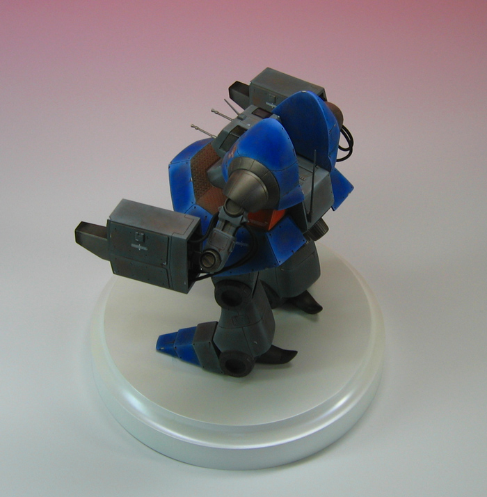 | 1/100キットのボックスアート(ホワイトパッケージ)をイメージして製作しました。劇中では脚部は鳥脚なのですが パッケージのスクッと足を伸ばした状態も良いと思い、そのように足を伸ばしています。 20年以上前のキットですがプロポーションは良好です。ただ前腕が他の部位と比べて ボリューム不足のように感じましたのでプラ板などでスクラッチしました。 改修箇所につきましては改修画像のページを参考にしてください。↓ 改修画像のページ 塗装・・・ 惑星ゾラの強い日差しの下で活躍するウォーカーマシンを想像しながら塗装しました。まずはグラデーション塗装ですが 強い光の下に置かれているよう、色が退色したよう、に見えるようにエッジに基本色よりも明るい色をのせています。 後にブラックグレーでウォッシングをする事で全体の明度が下がる事も考えて基本色はある程度明度を上げた調色をしています。 次にウォッシングですが強い太陽の光や劣悪な環境で装甲の表面が荒れているように見えるようにウォッシング後にランダムに スミイレ塗料が残るように拭き取っています。 ウォッシング後に軽くつや消しクリアーをコートしてからパステルをアクリル塗料で溶いたものでサビ水を描きこみ、 ウォーカーマシンの装甲の塗料が剥げ、下地の金属色が見えた状態を表現した塗装法(ハゲチョロ塗装)を行っています。 ハゲチョロ塗装はシルバー単色を使った表現方法ではなく、薄いグレーを塗装後に影になる部分に濃いグレーを、光が当たる 部分には白でハイライトを塗装しています(絵画法)。 この後にもう一度つや消しクリアーでコートし、パステルを粉状にした物を筆で塗りつけています。 デカール・・・ エアモデルの物を使用しました。 ベース・・・ ホワイトパッケージを連想させるように白→パールホワイトで塗装しています。 パールホワイトはパール粒子の非常に細かいビスマスパールを使用しています。 |
